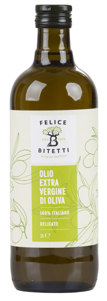 100 % italský extra panenský olej. Extrahování za studena. Sladký a vyvážený olej, hořký a kořenitý s jemnými tóny, sladká mandlová vůně. Vhodný na pokrmy s jemnou chutí, jako jsou sýry, ryby, masové a rybí carpaccio, bílá masa, saláty, grilovaná, vařená nebo dušená zelenina. Objem balení: 1 litr.